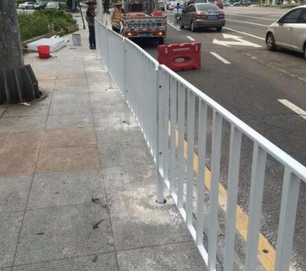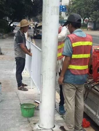 4.把人行道隔離護(hù)欄安裝好之后,清理一下衛(wèi)生。