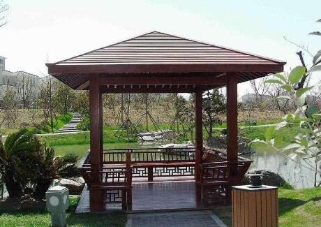 中國(guó)建筑是木結(jié)構(gòu)體系的建筑,所以涼亭也大多是木結(jié)構(gòu)的。木構(gòu)的涼亭,以木構(gòu)架琉璃瓦頂和木構(gòu)黛瓦頂兩種形式最為常見。前者為皇家建筑和壇廟宗教建筑中所特有,富麗堂皇,色彩濃艷。而后者則是中國(guó)古典亭榭的主導(dǎo),或質(zhì)樸莊重,或典雅清逸,遍及大江南北,是中國(guó)古典涼亭的代表形式。此外,木結(jié)構(gòu)的涼亭,也有做成片石頂、鐵皮頂和灰土頂?shù)?,不過一般比較少見,屬于較為特殊的形制。