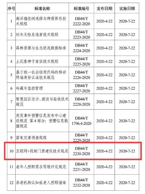 4月22日,廣東省市場監(jiān)督管理局《廣東省地方標(biāo)準(zhǔn)批準(zhǔn)發(fā)布公告》(2020第1號(總第 204 號))批準(zhǔn)發(fā)布12項地方標(biāo)準(zhǔn)。其中,由廣東省公安廳科技信息化總隊提出并委托我會牽頭制訂的廣東省地方標(biāo)準(zhǔn)《互聯(lián)網(wǎng)+視頻門禁建設(shè)技術(shù)規(guī)范》(以下簡稱“規(guī)范”) DB44/T2230-2020予以發(fā)布,并于2020年7月22日開始實施。